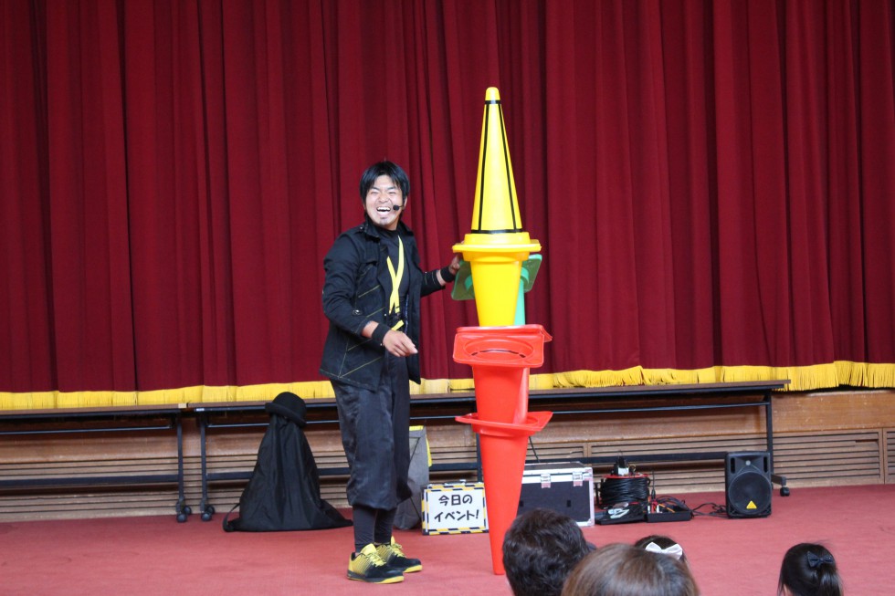 また、講堂で行われた大道芸人のパフォーマンスに歓喜をあげ、野球場では凧あげに夢中になる子どもたちがフィールド内をかけ回っていました。
