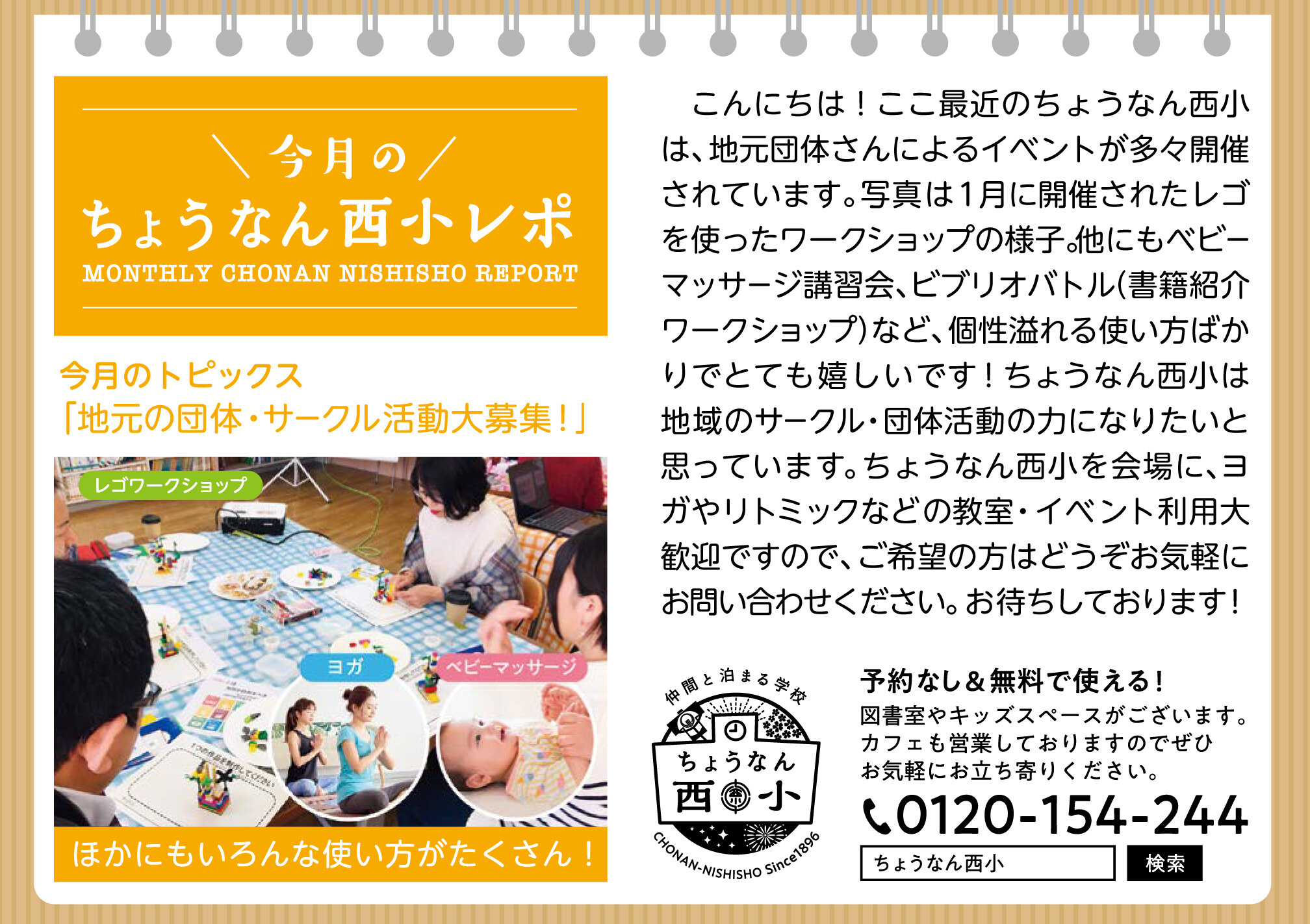 広報ちょうなん2月号(今月のちょうなん西小レポ)