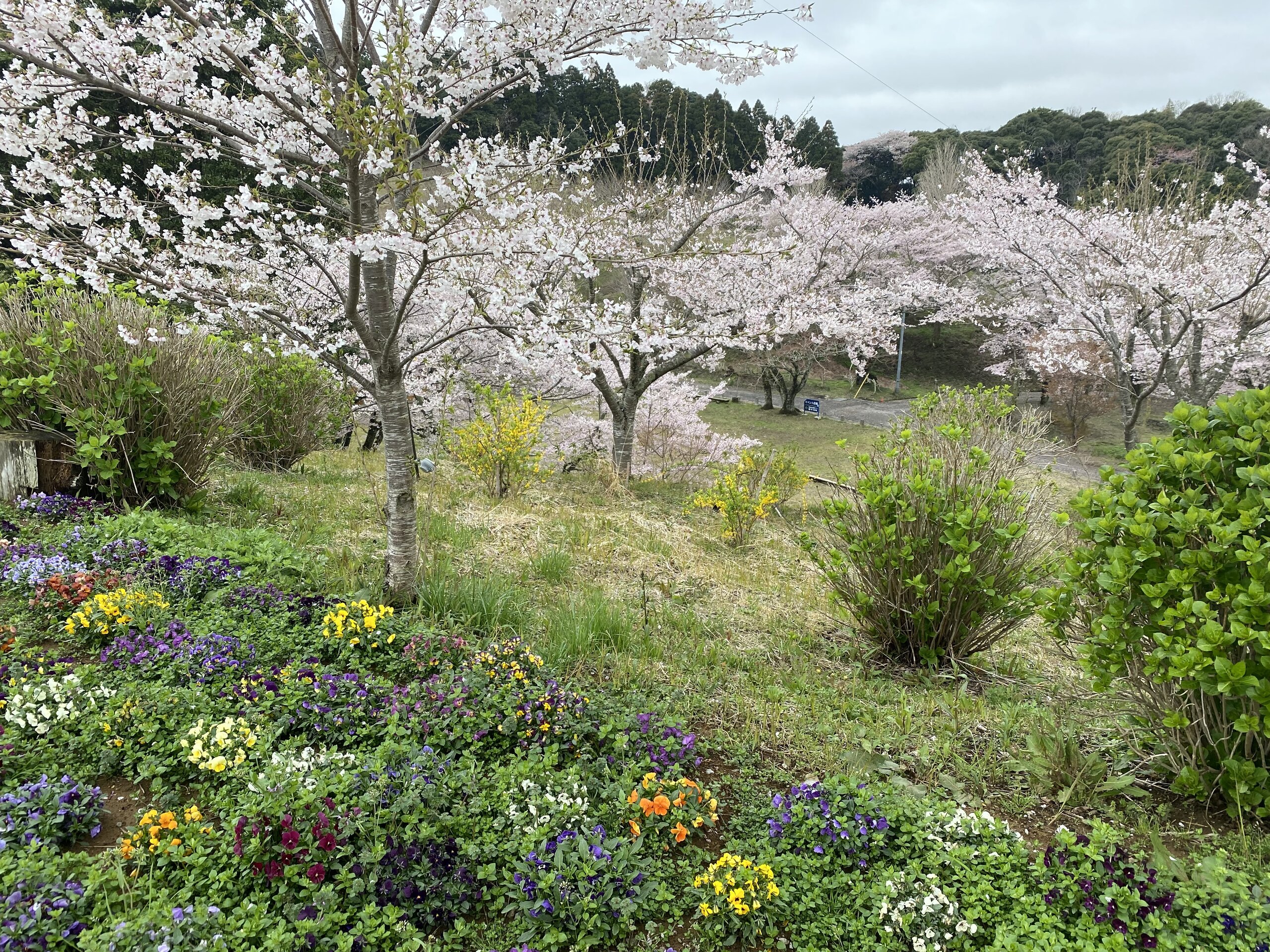 本日曇り空ですが、そめい吉野は満開を過ぎ少しずつ散り始めています。