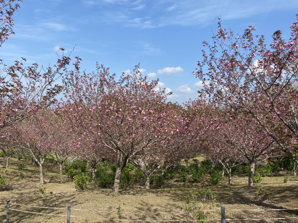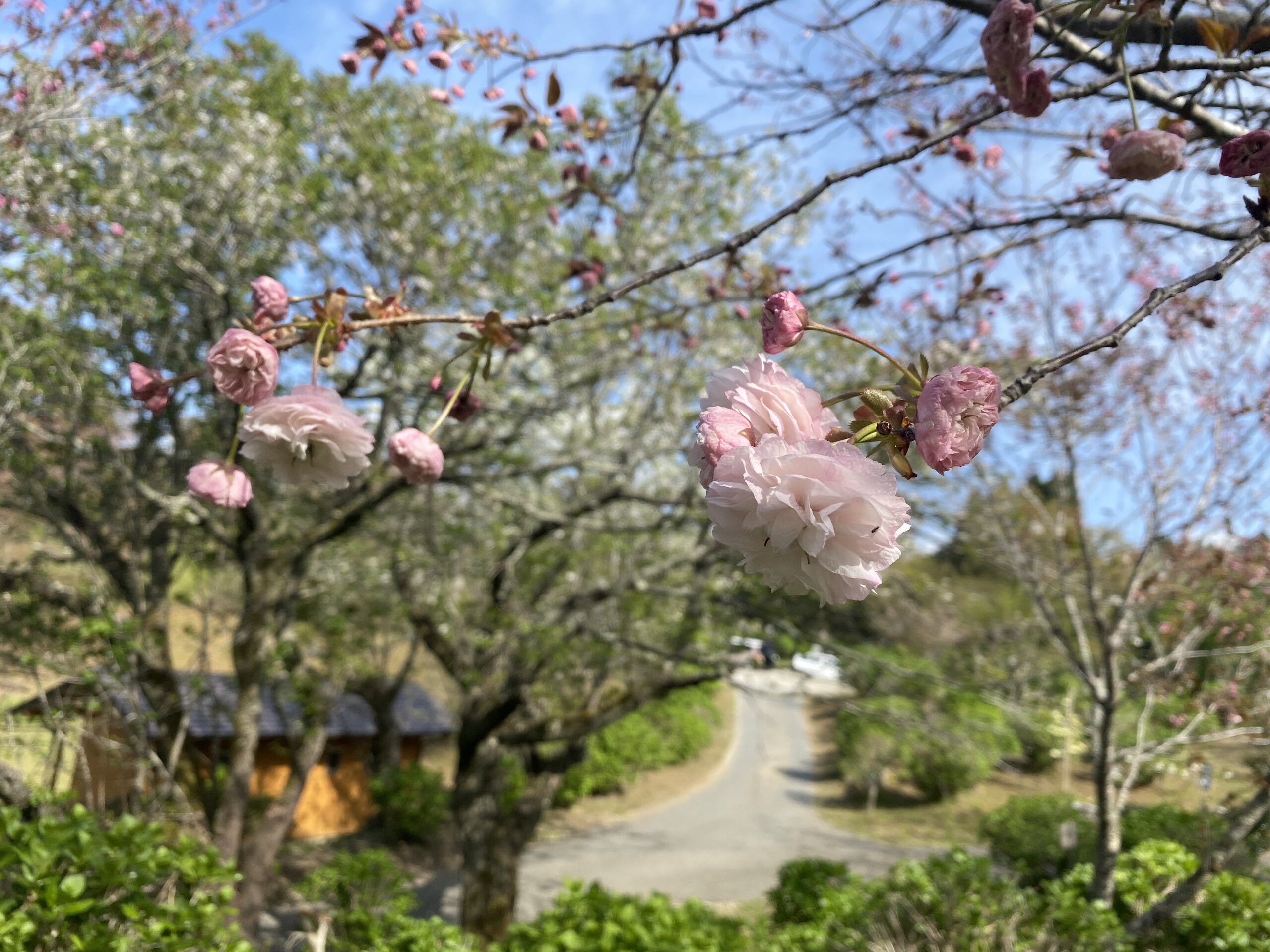 現在、関山桜は5分咲き程度の花を咲かせております。