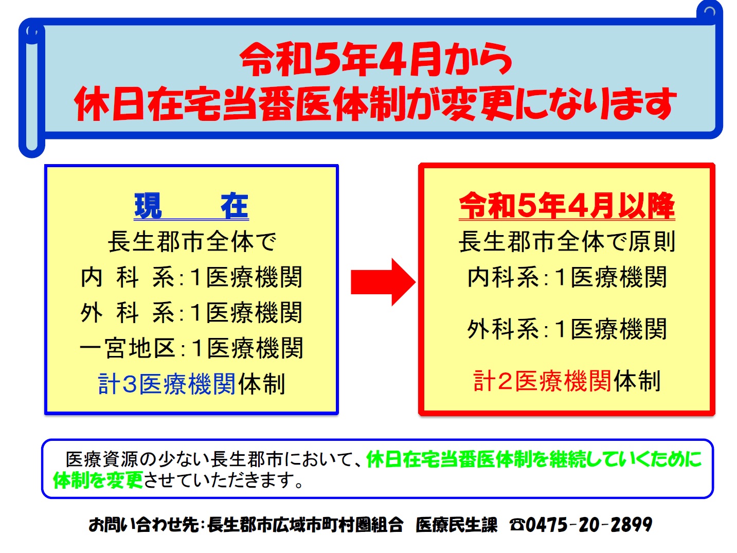 トップページ > お知らせ > 令和5年4月以降の休日在宅当番医制度について