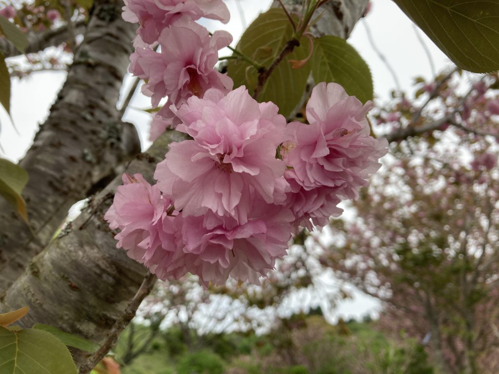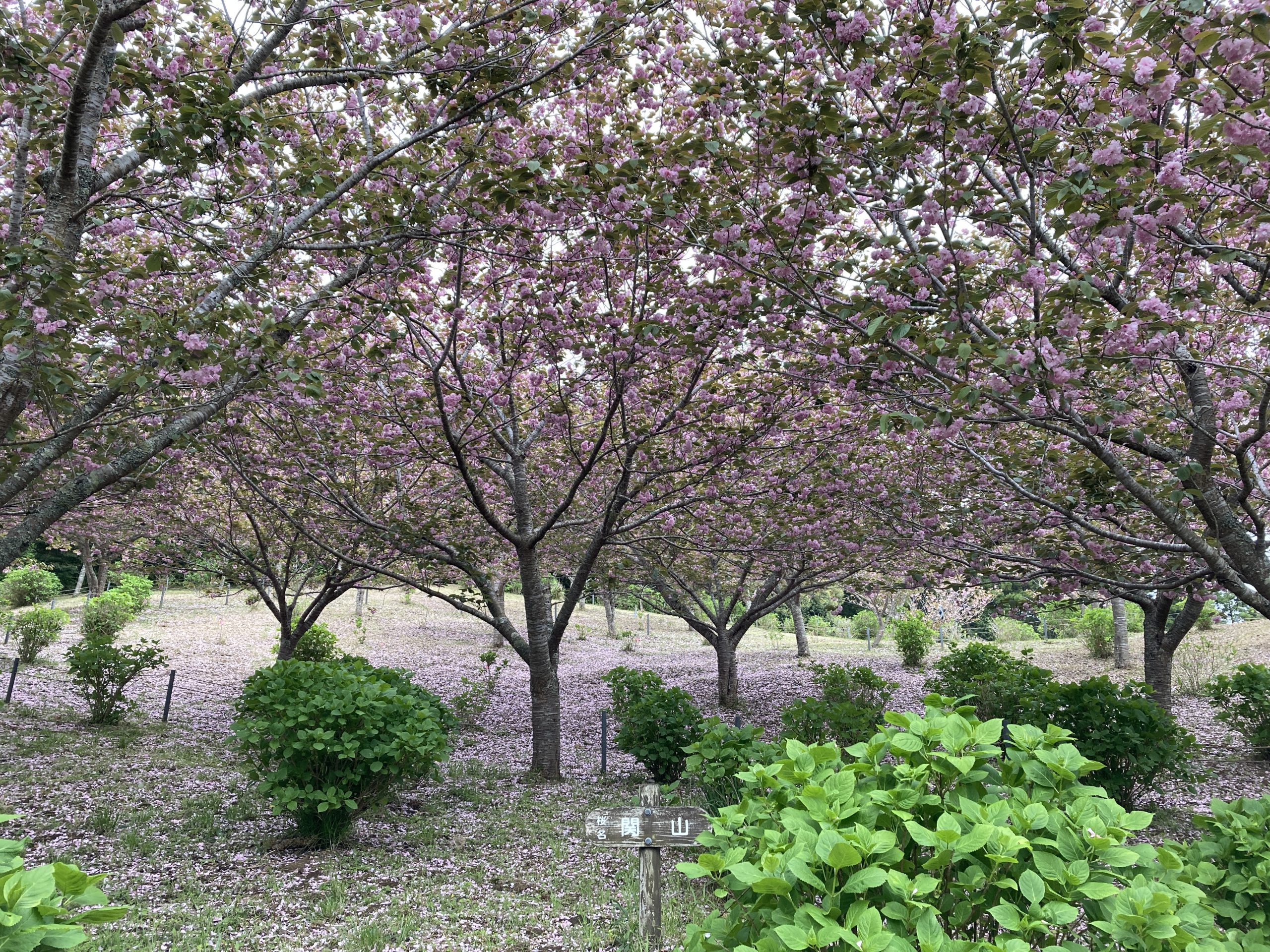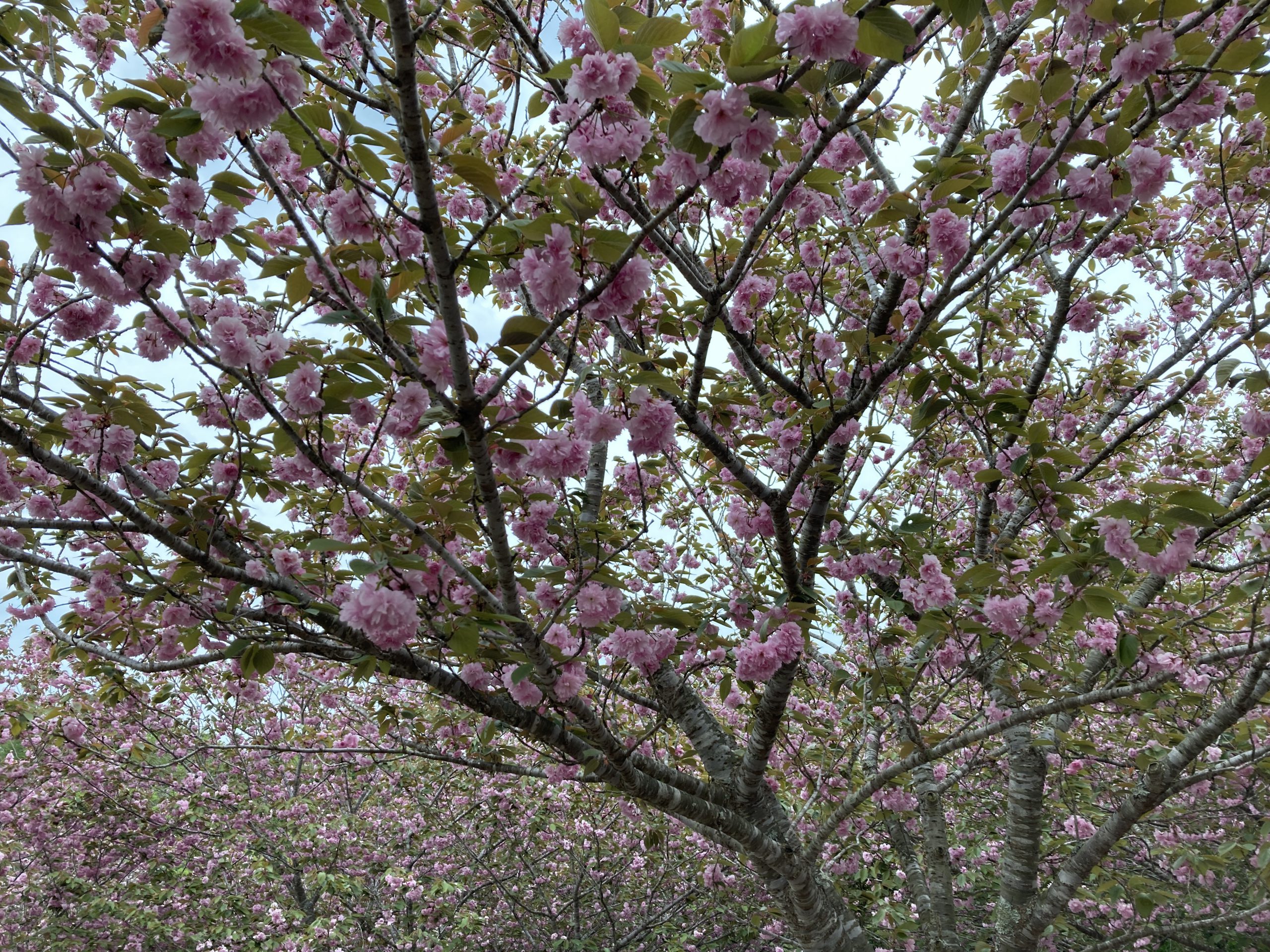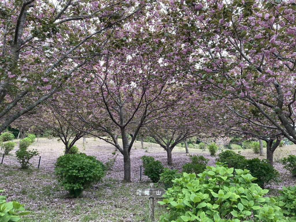 現在、関山桜は満開から散り始めといったところでしょうか。花びらの絨毯がとても美しいです。