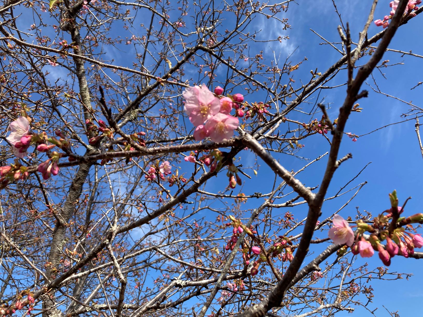 現在の河津桜の開花状況は、場所によって咲き始めの木もありますが、