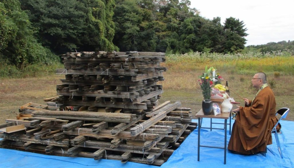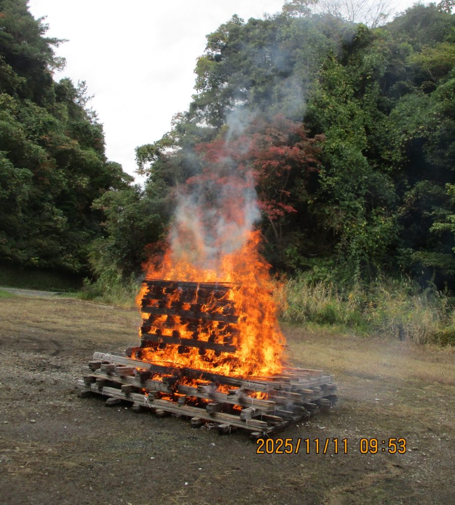 長南町笠森霊園では、令和7年11月11日(火)坂東第三十一番札所 笠森観音 小川長圓ご住職により、古くなった卒塔婆のお焚き上げを実施いたしました。
