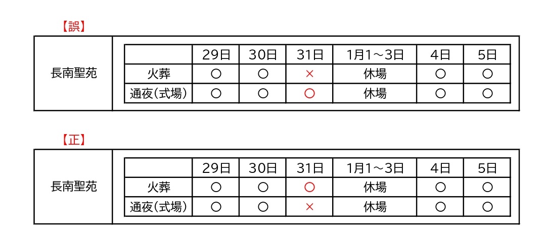 令和6年12月発行広報ちょうなんの7ページに掲載の『年末年始の業務日程』につきまして、誤りがありましたので、下記のとおり訂正します。