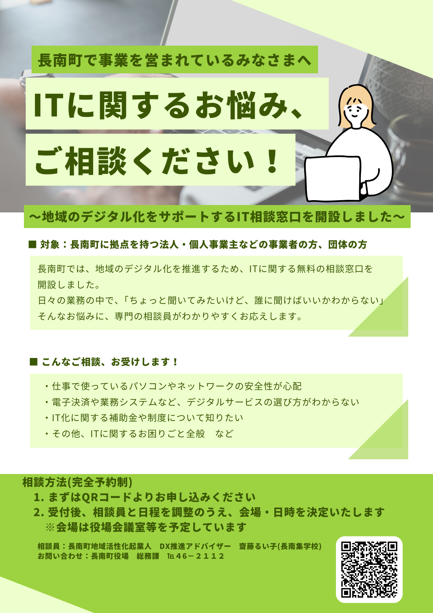 長南町では、地域のデジタル化を推進するため、町内で事業を営まれている方を対象として、無料のIT相談窓口を開設しました。