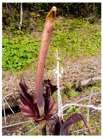 コメント:こんにゃく芋を植えてから15年経って、こんな不思議な花が咲きました。