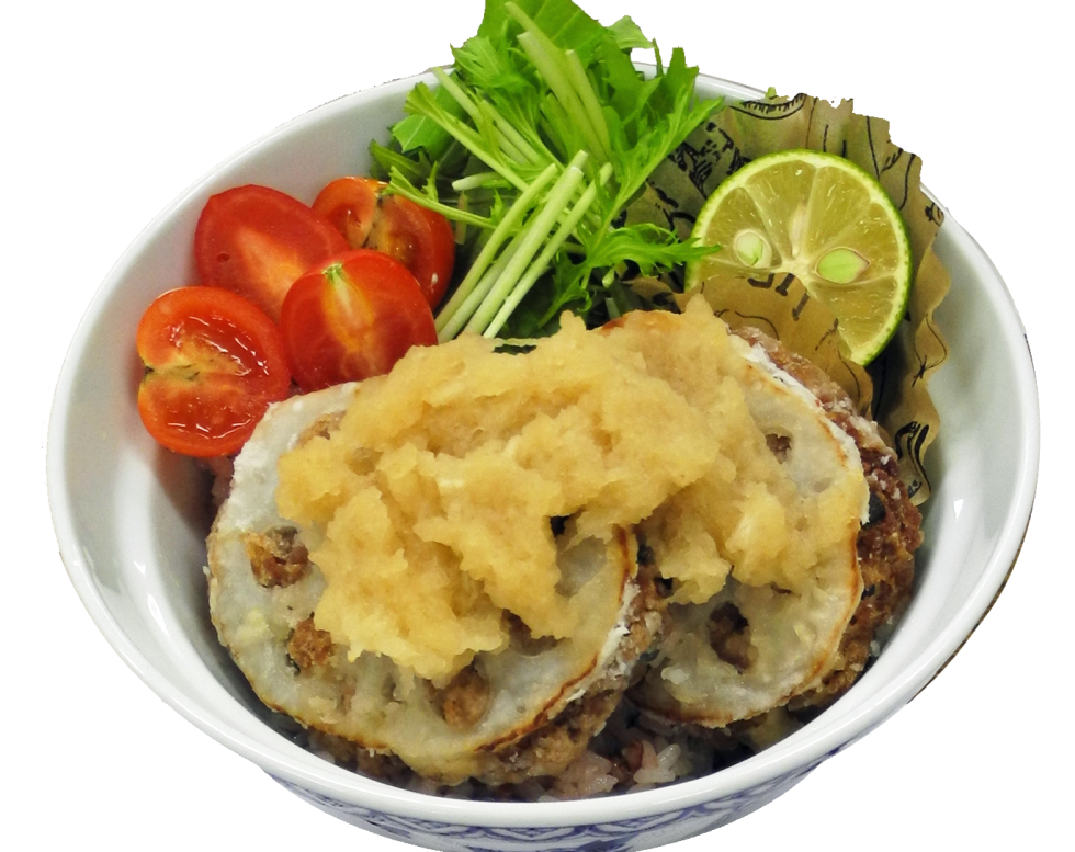 蓮根のはさみ揚げ丼~さっぱりおろしソース |