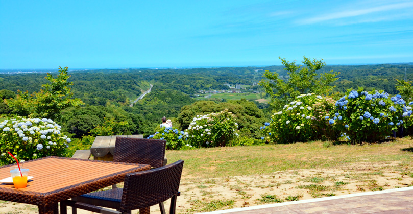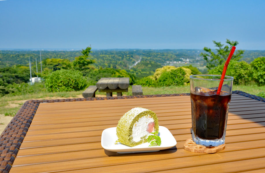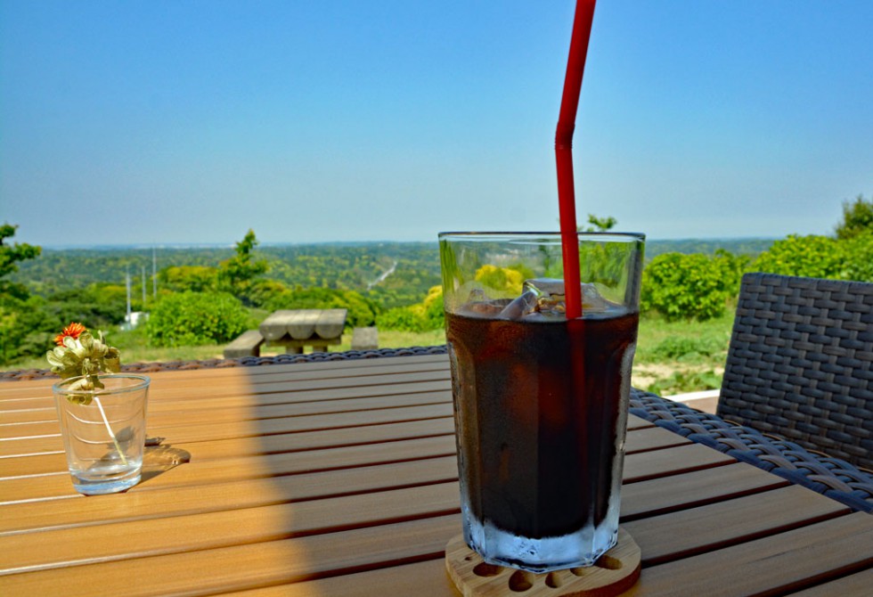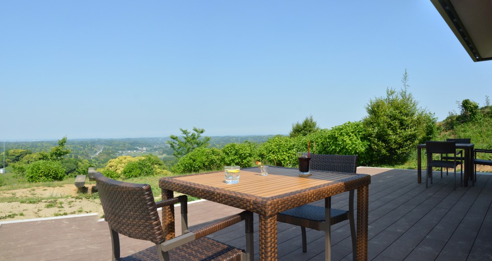 標高152mのテラスから見える絶景を眺めながら、ゆっくりと美味しいコーヒーなどの飲み物や長南町特産品をふんだんに使用したカレー、スイーツなどをお楽しみいただけます。