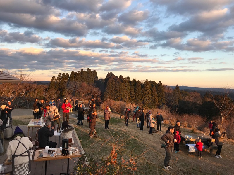 1月1日の初日出は、松明の灯り・地場の鍋など、水沼地区で野見金古道をボランティアで