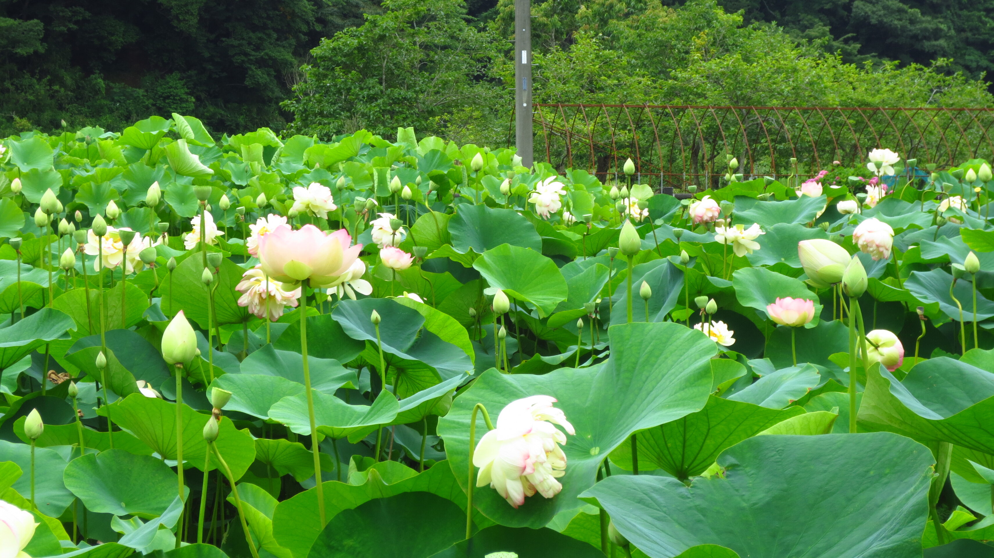 現在の熊野の清水公園は花ハスが見頃となっております。