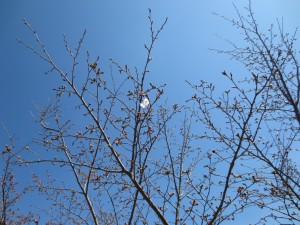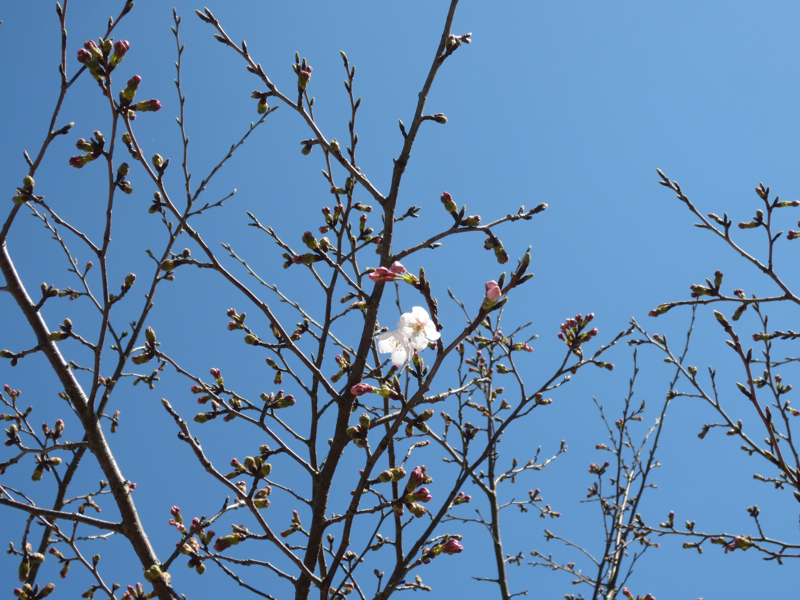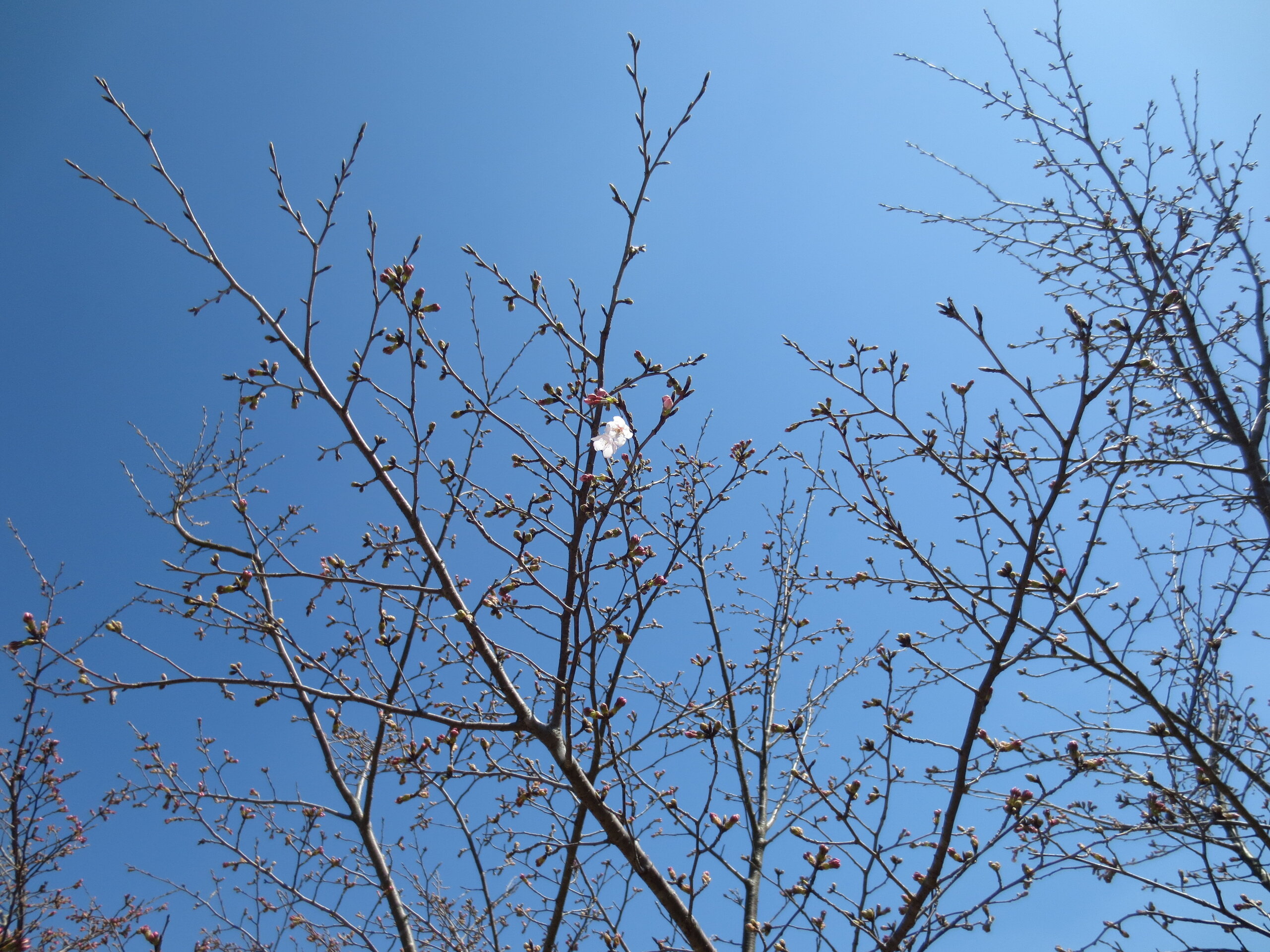 蕾が多いなか、ソメイヨシノが花を咲かせました。