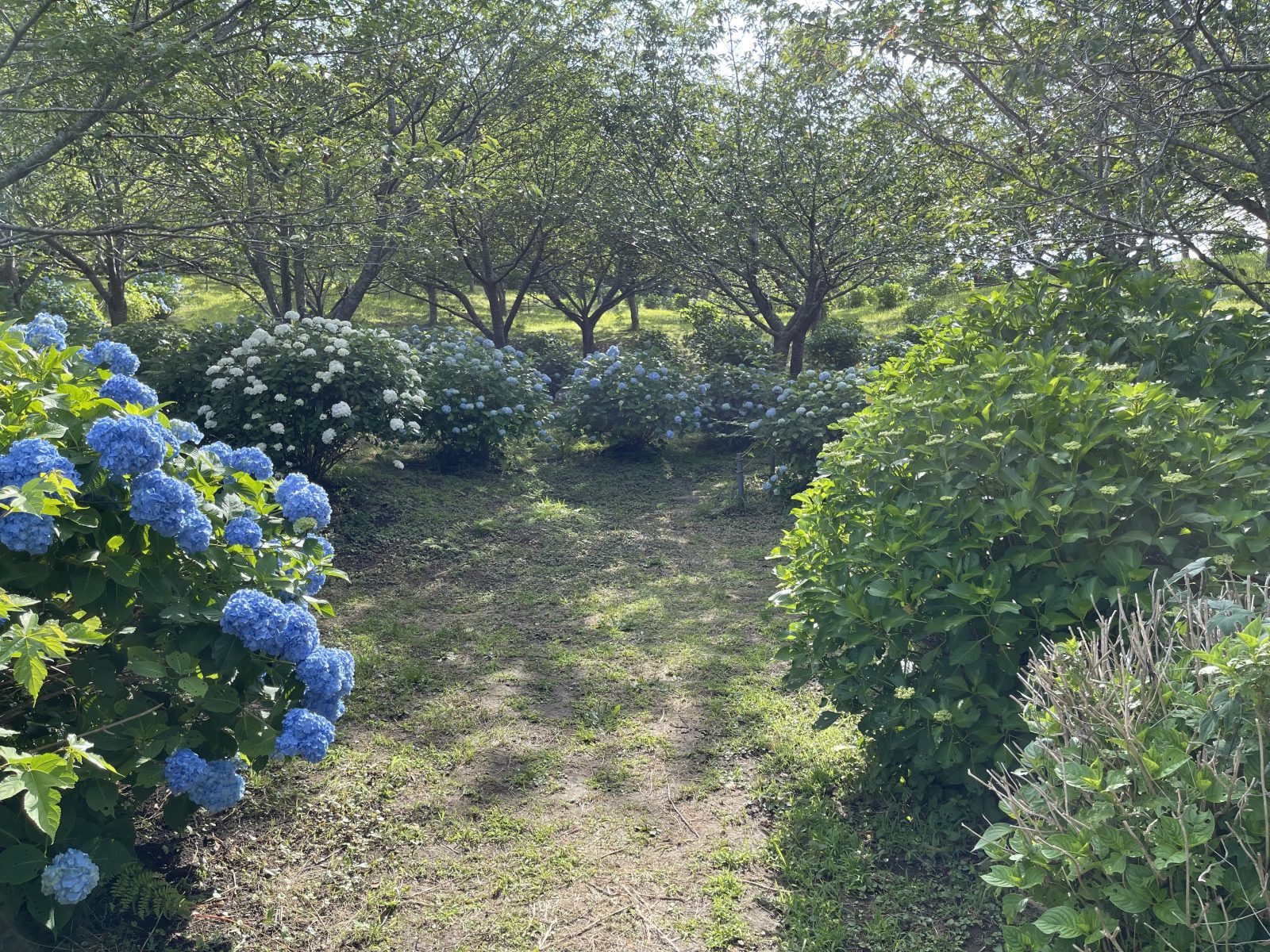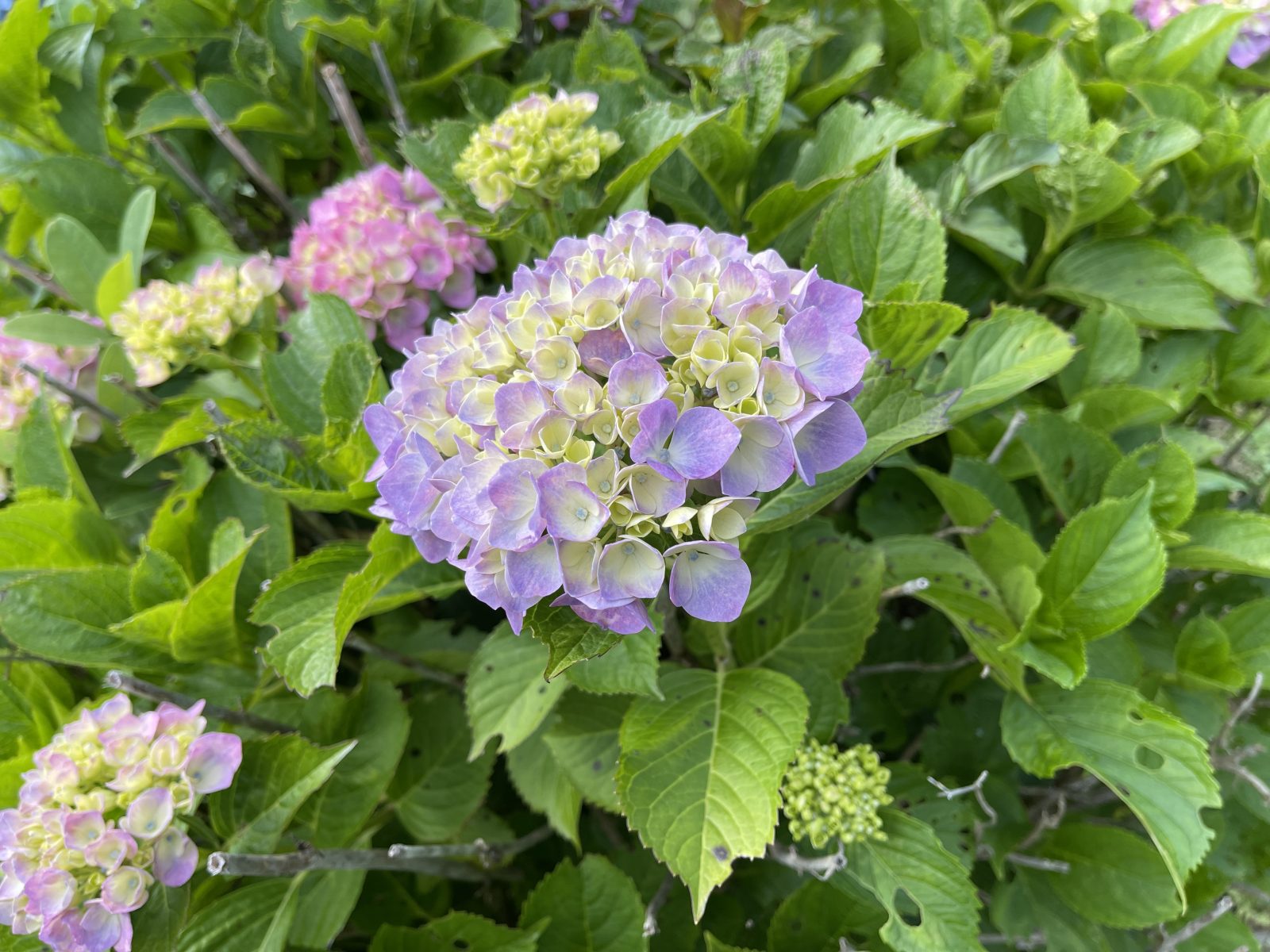 現在のあじさいの開花状況は、全体で7部咲きくらいでした。