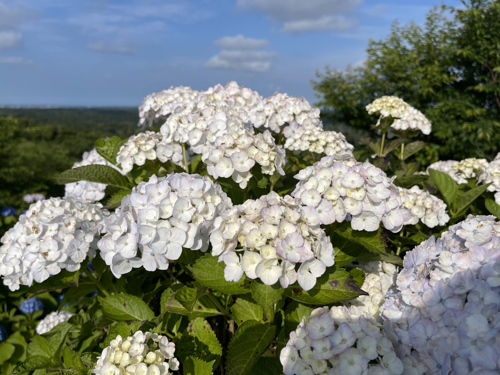 紫や水色、白と様々な色のあじさいを楽しむことができます。