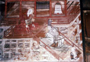 笠森寺観音堂には日蓮上人が三十七日間籠ったという「参籠の間」があり、墨田(現在の茂原市墨田~長南町須田一帯)の住人墨田(高橋)五郎時光が、ここで日蓮の説法に深い感銘を受け信者となったと伝えられています。絵馬はこの伝承を江戸時代初期の絵師、狩野安信が描いたものです。安信の実兄には早熟の天才画家として知られる狩野探幽がいますが、狩野宗家の家督を継いでいたのは安信でした。 笠森寺/長南町笠森 →地図 |