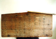 現在の長南市街は江戸時代には矢貫村に属し、江戸と大多喜・勝浦方面を結ぶ房総中往還の宿場町として大いににぎわっていました。この絵図の正確な作成年は不明ですが、江戸時代後期の長南宿の街並みがよく描かれている貴重な歴史資料です。 長南町郷土資料館/長南町長南 →地図 ※長南町郷土資料館で常設展示しています。 |