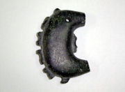大きな”親勾玉”のまわりに突起状の”子勾玉”が付いているように見えることから、子持勾玉と呼ばれています。材質は滑石で握りこぶしほどの大きさです。古墳時代中期の竪穴住居跡から出土しました。この時期は滑石製品を用いた祭祀が盛んに行われましたが、子持勾玉も祭祀・儀礼のための製品であったと思われます。 長南町郷土資料館/長南町長南 →地図 ※長南町郷土資料館で常設展示しています。 |