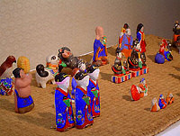 江戸浅草に伝わる今戸人形の手法を取り入れたもので、江戸末期より田中家で3代にわたって製作されてきました。現在、千葉愡次氏が4代目を継承しています。また、芝原人形は『芝原人形工房』で展示しており見学することができます。